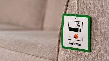 – Check for the fire safety label – usually found under seat cushions or on the back of sofas and chairs.