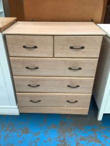 Small scuff on the bottom drawer otherwise in good condition. This chest of drawers provides ample storage space with its 83CM width and 94CM height, accommodating various items while maintaining a compact footprint of 48CM. Its durable metal handles enhance functionality and ease of use.